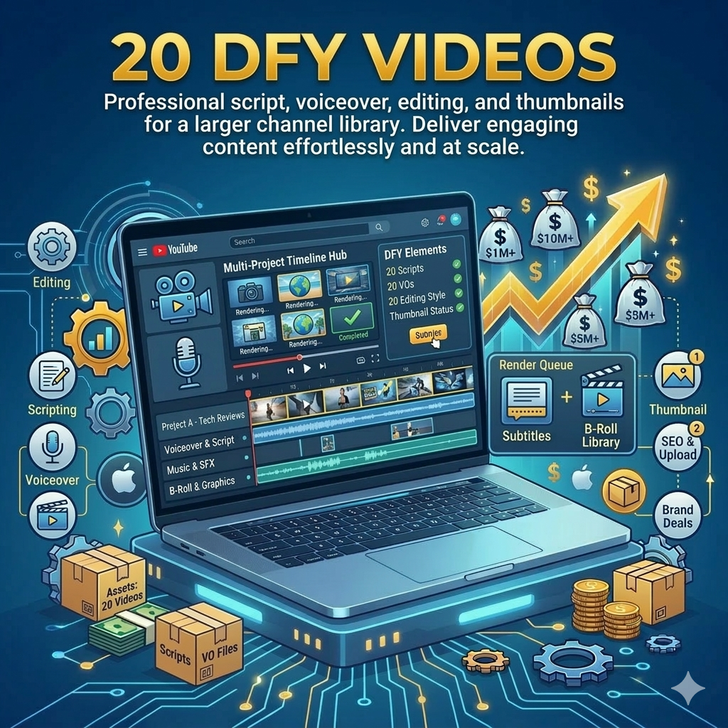 A complete done-for-you video content package designed for creators who want consistent publishing and faster channel growth.